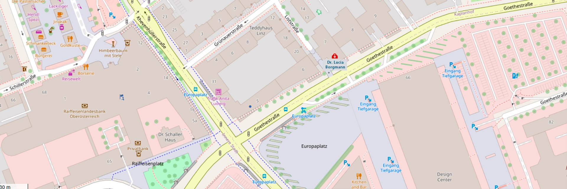 Die Ordination Dr. Lucia Borgmann ist zentral gelegen, mit gutem Anschluss an die öffentlichen Verkehrsmittel, (Fahrplanauskunft )